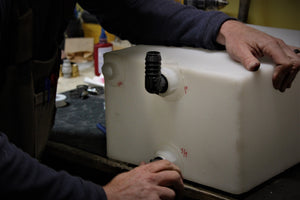 To add water to your tank, first insert your Air Bleed fitting into the Air Bleed port on your TK system, and the scrap hose end can just lay anywhere outside your rig. The Air Bleed function allows air to effectively escape your tank or bladder while filling/using. Next you can attach the Fill fitting into the Fill port on your system, and attach the other end to your freshwater source (such as a water spigot). Simply turn on or open your freshwater source and allow water to flow into your TK system. It’s always a good idea to keep an eye out for any leaks while doing this process. When your tank is filled to capacity, water will escape out of the Air Bleed port, this is why having a scrap hose to attach here is nice so water runs clearly outside your rig. At this point you can turn off or close your freshwater source. We like to continue to let some of the built up water to escape out of the Air Bleed after the source has been turned off, this just relieves any unnecessary pressure on your tank. You can now remove both fittings from your TK system and your water tank is now full. ** Each tank in your TK System will have its own Fill and Airbleed function, so this process is repeated for all auxiliary tanks in your rig. **Â